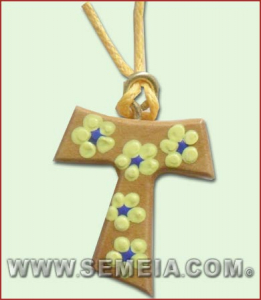 CROCE TAU LEGNO OLIVO C/FIORELLINI cm.2,2