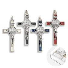 CR BT/013 CROCE S.BENEDETTO IN METALLO SMALTATO ARG. 5x3 cm CIRCA COL. ASS.