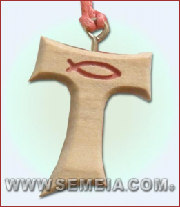 TAU IN ULIVO cm 2,5 C/SIMBOLO C/CORDONCINO ROSSO/BLU