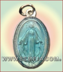 Medaglia Miracolosa mm. 20 in alluminio smaltata azzurra