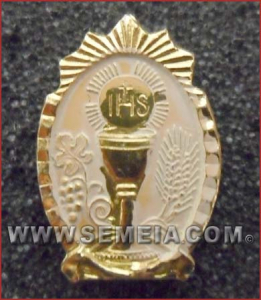 MEDAGLIA COMUNIONE DORATA SM.SPILLA cm. 2x1,5 circa