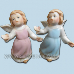 ANGELO PORCELLANA cm 8 CIRCA COL. ROSA/CELESTE