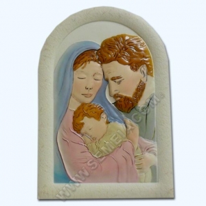 SACRA FAMIGLIA EFFETTO PIETRA CON DECORAZIONI A STAMPA cm 10x7 CIRCA DA APPOGGIO/APPENDERE
