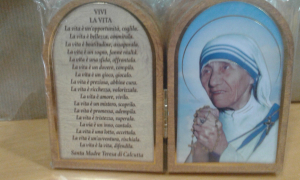 DITTICO IN LEGNO MADRE TERESA/VIVI LA VITA (APERTO cm 12x9 - CHIUSO cm 6x9)