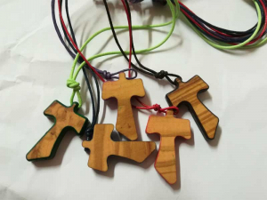 Tau legno cm. 3 circa con cordoncino e contorni colorati