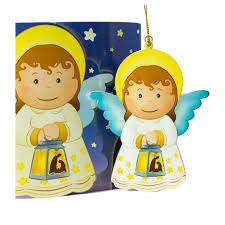 PR FR/087 CONFEZIONE CARTONCINO CON ANGELO cm 10x12 CIRCA IN POLIMERO EFFETTO LUX