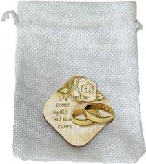 Una citazione biblica tratta dal Cantico dei Cantici "Mettimi come sigillo sul tuo cuore" accompagnata dal disegno di due fedi appoggiate l'una sull'altra e da una rosa bianca.